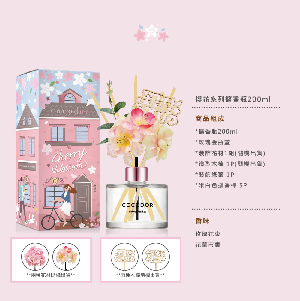 COCODOR推出最新櫻花系列擴香瓶,表現出街上充滿著春天的氣息與心動的氣氛,飄落的櫻花與享受春天的人們,就好像在某個地方偶然的珍貴相遇,邀請你進入那滿懷心動的瞬間,與COCODOR一起沉浸在春天美好香氣的空間裡。