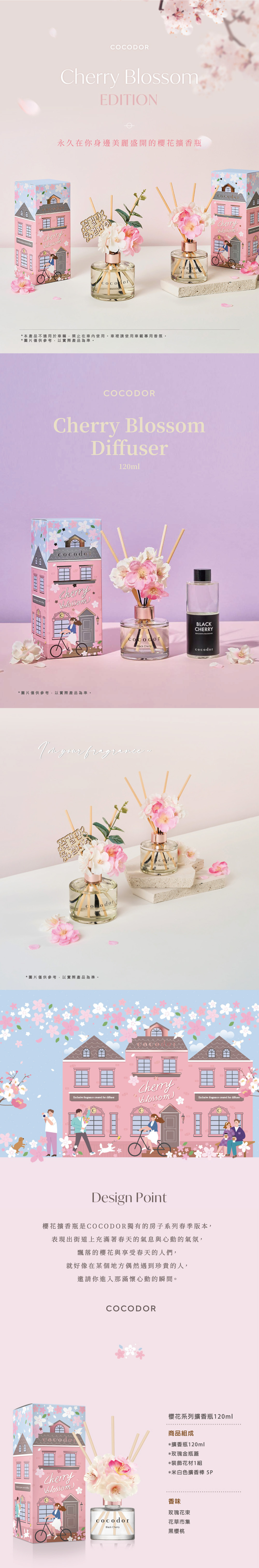 COCODOR推出最新櫻花系列擴香瓶,表現出街上充滿著春天的氣息與心動的氣氛,飄落的櫻花與享受春天的人們,就好像在某個地方偶然的珍貴相遇,邀請你進入那滿懷心動的瞬間,與COCODOR一起沉浸在春天美好香氣的空間裡。