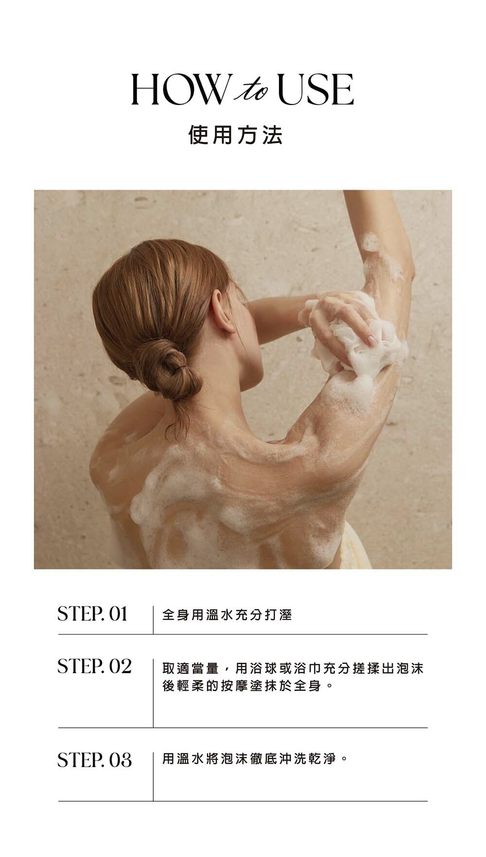 溫和地徹底清潔,同時調理頭髮和頭皮,讓頭髮亮澤柔韌有彈性,沐浴後也能保持水潤平衡,讓肌膚恢復彈性,為身體準備好豐富細緻泡沫的香氛SPA!
