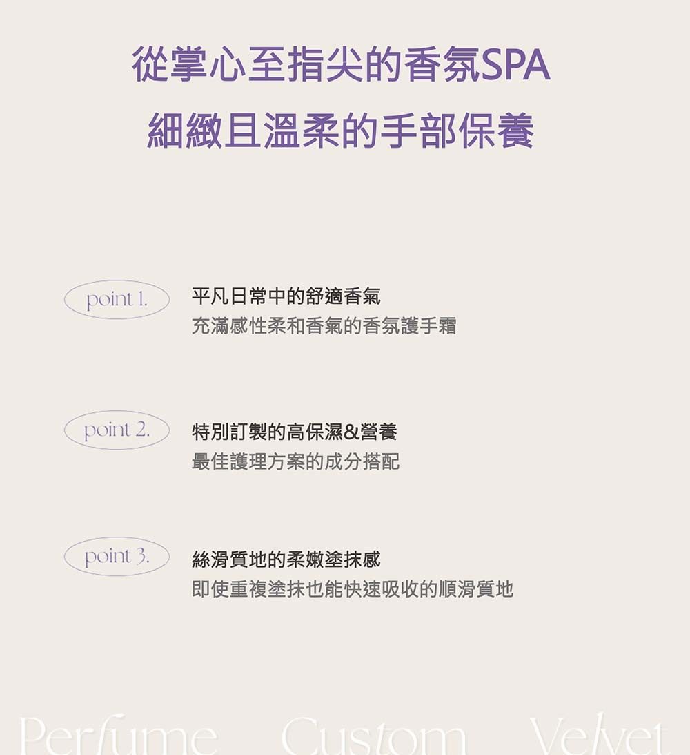想讓粗糙的指緣、手部肌膚變得柔嫩滋潤有光澤嗎?想讓指甲變得平滑潤澤嗎?快速鎮定肌膚,調節平衡,在皮膚形成保護屏障,打造滑嫩感,彷彿天鵝絨般柔細觸感。