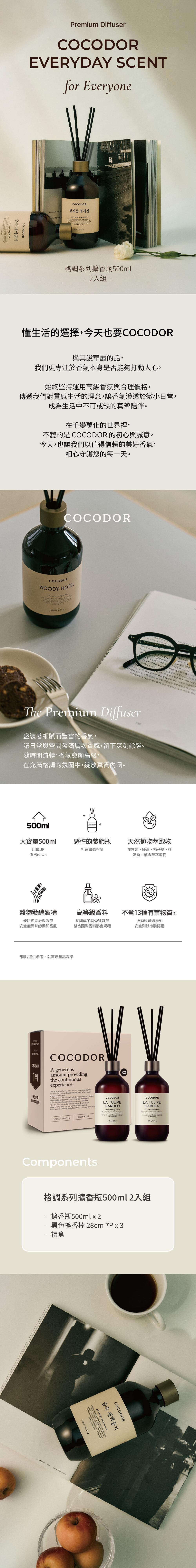 COCODOR全新系列,Premium格調系列500ml擴香瓶,兼具設計感及實用性的大容量感性擴香瓶,可長時間散發柔和的清香。