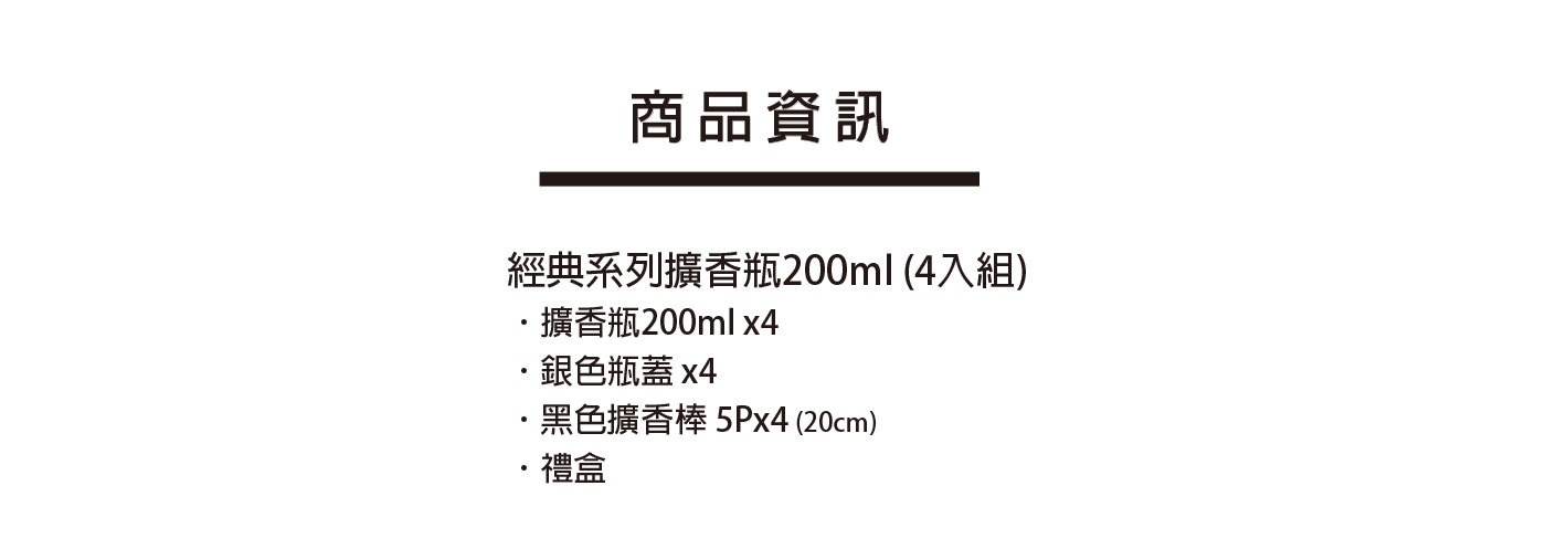 精選4款熱門香氣,適合送禮使用,瓶身設計簡約時尚,適合擺放於各種室內空間。