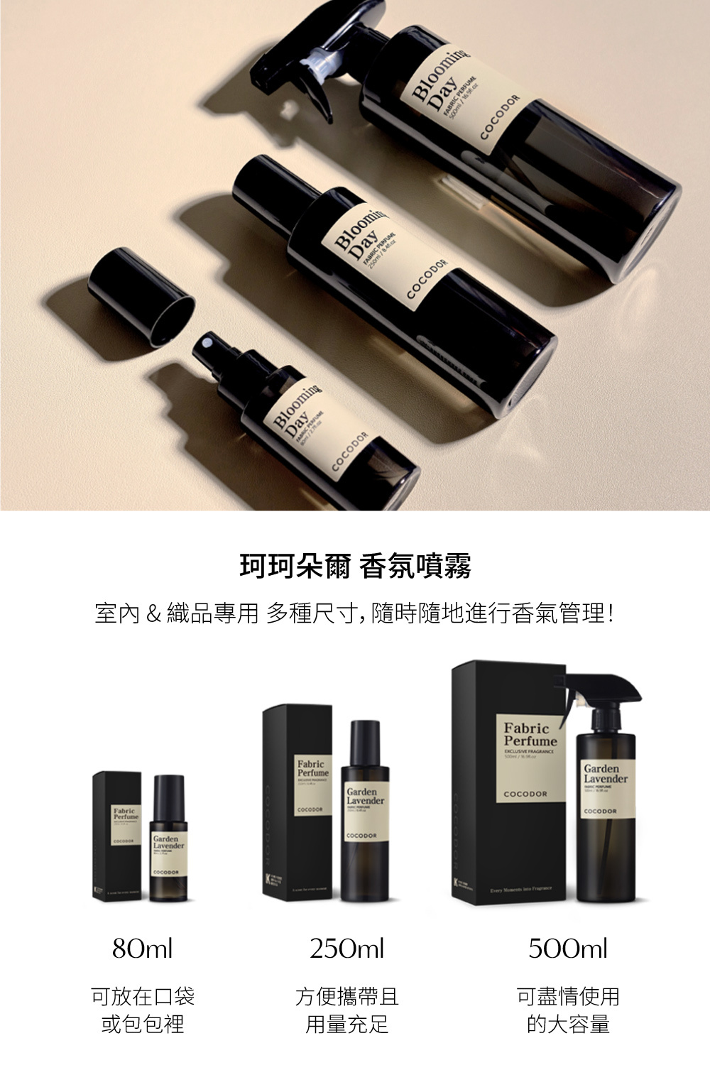 COCODOR精選優雅舒適香氣,含有優秀除臭力的植物萃取物,柔和安心的香味,輕鬆一噴可快速消除各種異味,可以多用途使用,快速消除不好聞的氣味,也可直接噴在室內空間讓生活更清新舒適。