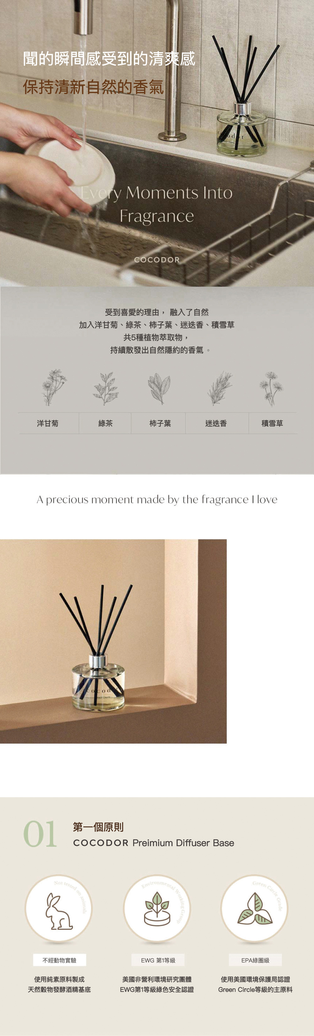 來自韓國的COCODOR經典擴香瓶,由專業韓國調香師精心調配,採用安全原料製成,搭配瓶身簡約時尚的設計,打造優雅的居家與室內空間。